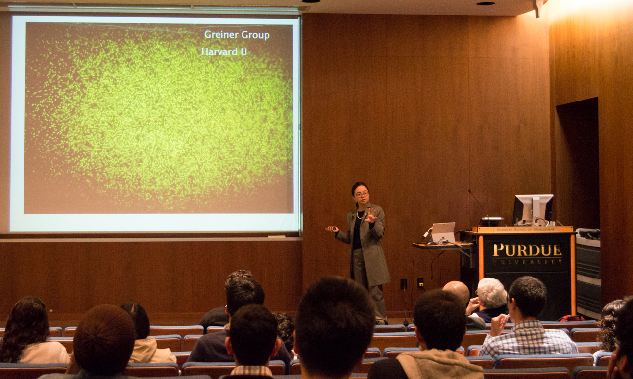 Prof. Ximena Bernal, assistant professor of biological sciences at Purdue University since 2014, gave a talk titled "Eavesdroppers of mating signals: lessons on basic and applied science from frog-biting midges". Her B.S. in biology was from Universidad de Los Andes in 1998 and her M.Sc. in Physiology and Animal Behavior from the same university in 2001. Then, she graduated with her Ph.D. in ecology, evolution and behavior from the University of Texas at Austin in 2007.