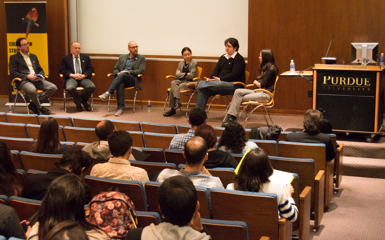 With 68 attendees, this year featured several dynamic, innovative speakers who shared their experiences with the Purdue community and served on a discussion panel that allowed a more interactive opportunity to explore their topics and their careers as researchers. A poster session allowed attending students to communicate their own research and network with the speakers and other event participants. The event also included a photo exhibit and competition. The Best Photo Award was determined by popular vote and given to "Desayuno" by Santiago Catano, "Naive" by Rodrigo Rodríguez Fuentes and "Tokay Gecko" by Andrés Tibabuzo.