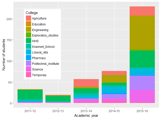 Number of Purdue undergraduate students that have participated in Study Abroad programs in Colombia from 2011 to 2016, by college. Source: Purdue Data Digest.
