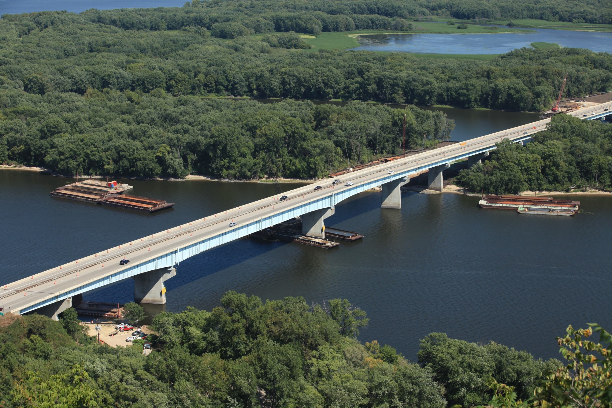 Although the existing bridge had no weight restrictions and operated at an acceptable level of service, there were several issues with the bridge and surrounding roadways that motivated its replacement. These included the current interchange geometry, which created difficult and unsafe traffic movements for commuters, as well as structural deficiencies in the bridge—there was no structural redundancy (as per current guidelines), portions were beyond their useful life, and fatigue cracking had occurred. Other concerns included narrow bridge shoulders that did not meet state/federal standards, a lack of emergency vehicle bypassing or stalled vehicle storage, traffic buildup during parts of the day, and traffic safety issues, such as a higher crash rate on the I-90 curve and a pattern of crashes on the northbound Hwy 61 to eastbound I-90 ramp. Riverfront access was also a problem, with no access from southbound Hwy 61 or eastbound I-90. Additionally, I-90 serves as a regional river crossing, with the nearest crossings being five miles south and 24 miles north. The bridge was replaced in 2016.