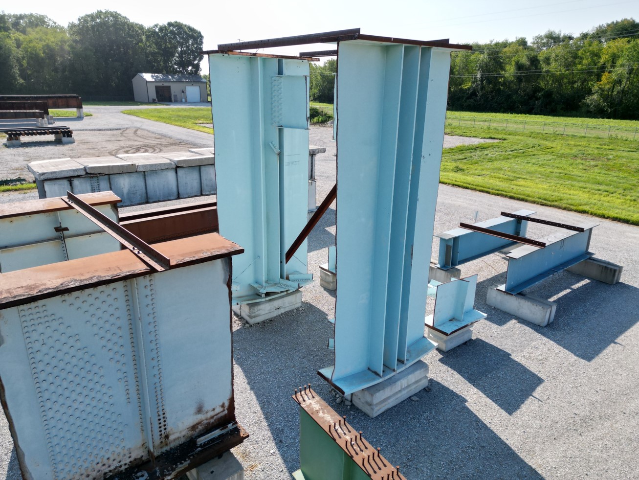 The girders on the bridge were very deep and included longitudinal welded CJP web splices. The bridge specimens donated to S-BRITE showcase simple and effective retrofits, particularly at the intersection of welds on the lateral gusset plate details. This retrofit was most likely performed after the fracture of a girder on the Lafayette St. Bridge near St. Paul, Minnesota, in 1975. Other components obtained from the bridge include a pin and hanger assembly, as well as fixed and rocker bearings.