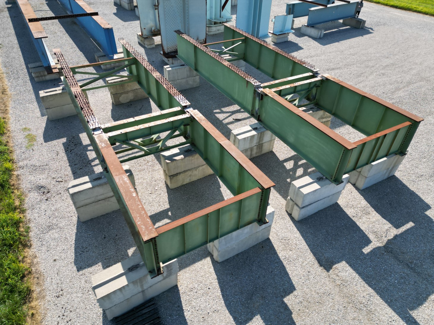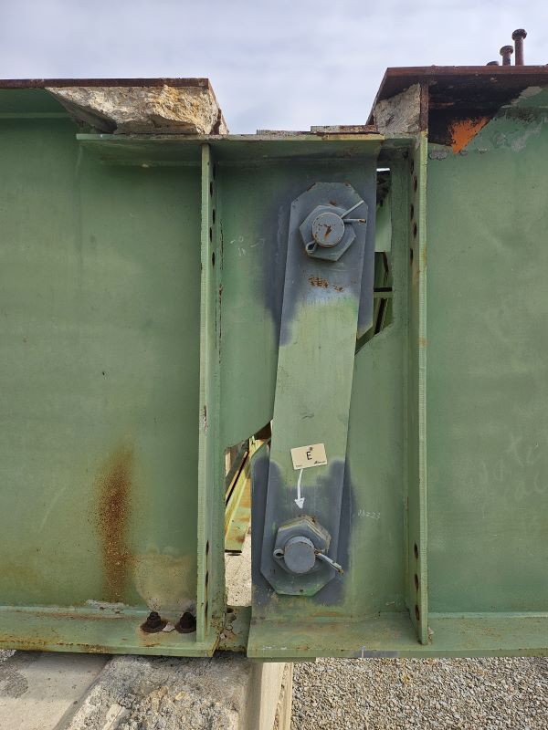 The girders include pin and hanger construction details and various other welded attachments. It is an excellent example of 1960s vintage steel bridge design and fabrication, with various fatigue sensitive details. Shear studs are present on the portions of the girders that were subjected to positive movement.