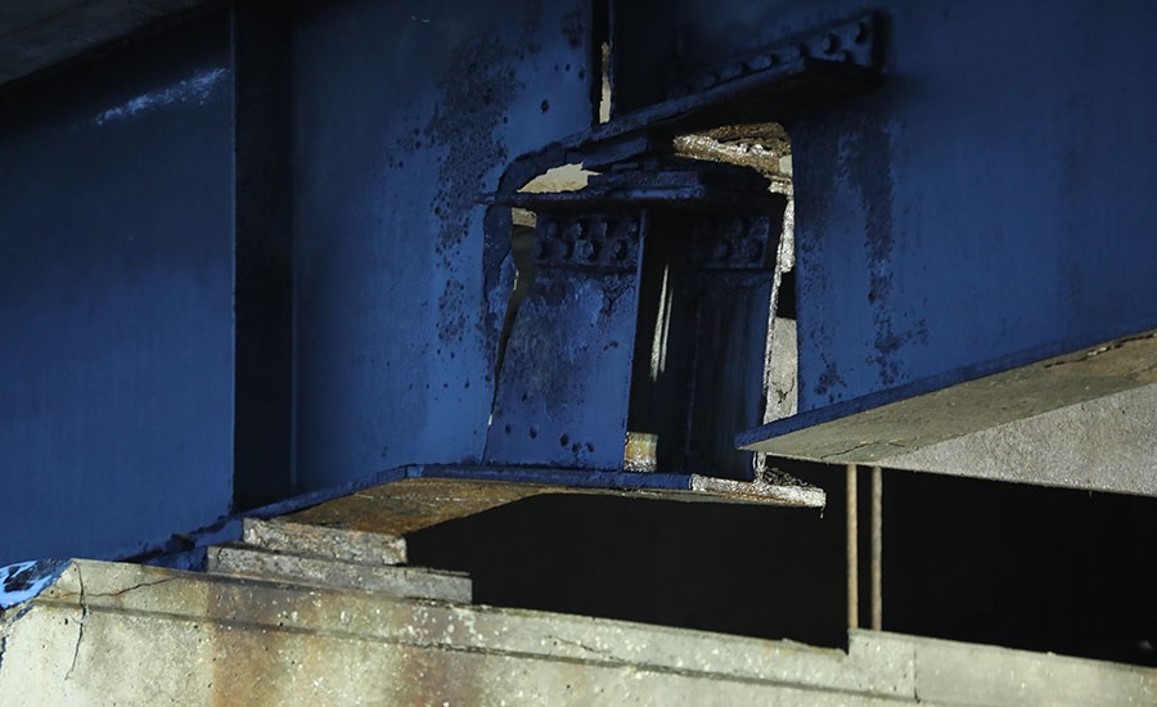 In February 2019, a structural emergency led to the closure of northbound lanes on Lake Shore Drive in Chicago due to cracks in two critical steel beams. Extreme temperature swings and corrosion were cited as likely contributing factors. This incident underscores the importance of timely inspections and maintenance of steel bridge structures. S-BRITE houses a section of the girder from this bridge, offering students and professionals the opportunity to study real-world failure mechanisms up close. This specimen serves as a valuable resource for understanding the interplay of environmental factors and structural deterioration.