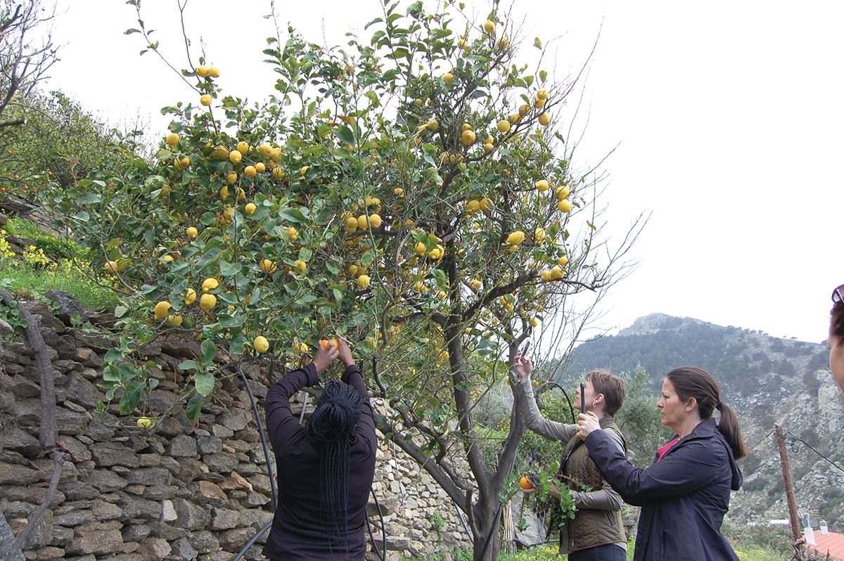 Ikarians depend on the land to provide them what they need. When picking greens from the mountain that would soon become our lunch, an 85-year-old man noticed and quickly motioned us over to his lemon and orange trees. To our surprise, he climbed the trees and tossed down sweet-smelling fruits for us to enjoy.