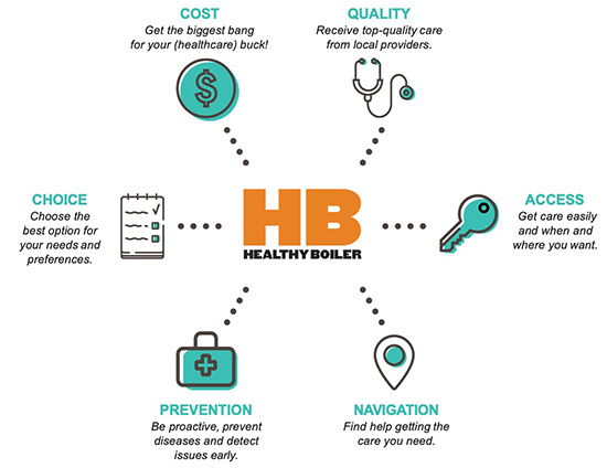 The Healthy Boiler Program, a multi-faceted approach to overall well-being, focuses on five pillars – behavioral health, financial wellness, physical health, social wellness and work-life integration. The program provides care in each of these areas by offering cost-controlled benefits and easily accessible resources. Combined with partnerships – specifically focused on our smarter approach to healthcare philosophy – you have access to top-quality care that is affordable, convenient and effective.