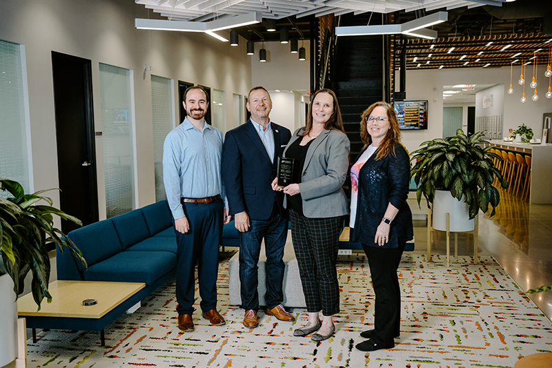 Shawn Huddy is the winner of the 2023 Community Spirit Award. From left: JJ Sadler, Joel Rasmus, Shawn Huddy and Rendi Tharp. (Purdue University photo/Kelsey Lefever)