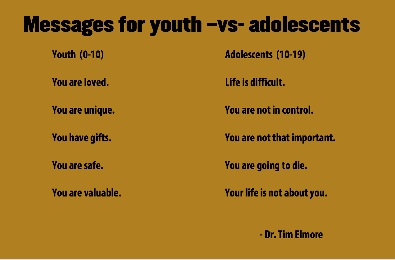 A part of my role is I have the privilege of co-chairing the Mental Wellness Task Force her on campus. This is a relatively new initiative to teach our faculty, staff and students techniques to promote wellness, positive mental health and stress management. The theme of “grit” and “resilience” is one that I have had the pleasure of researching. One of my favorite authors on today’s college students is Dr. Tim Elmore. In his recent work Dr. Elmore highlights the role of parents missing an opportunity to ground our older kids in some hard truth. He talks of the following messages that need to be delivered to today’s children: