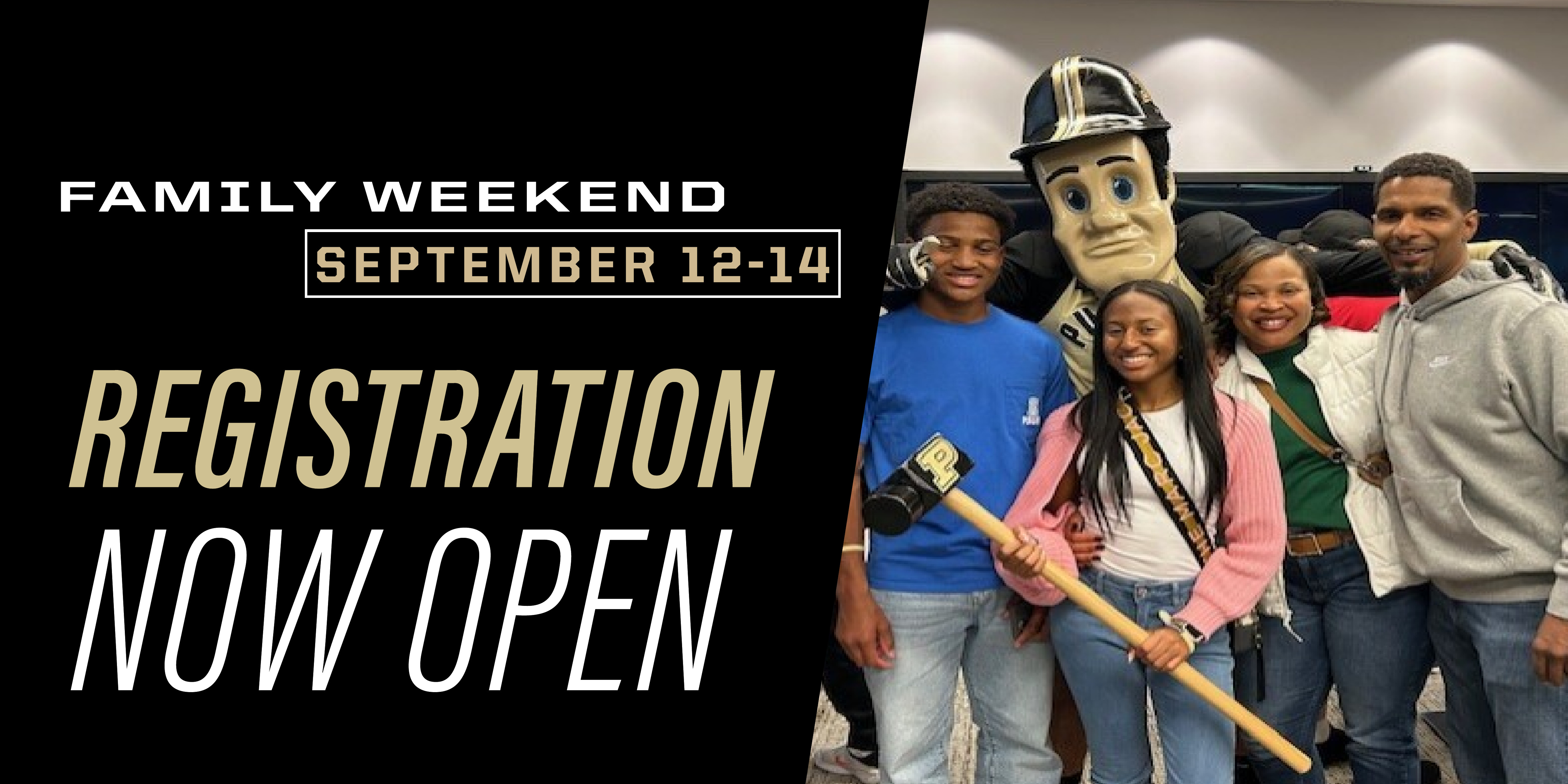 Parent & Family Connections appreciates your interest and engagement in Purdue's Family Weekend, September 12-14, 2025! This weekend is all about creating family memories, meeting other families, learning more about the campus, and experiencing the energy of West Lafayette and Indianapolis. From fun activities to educational events, there is something for everyone to enjoy.