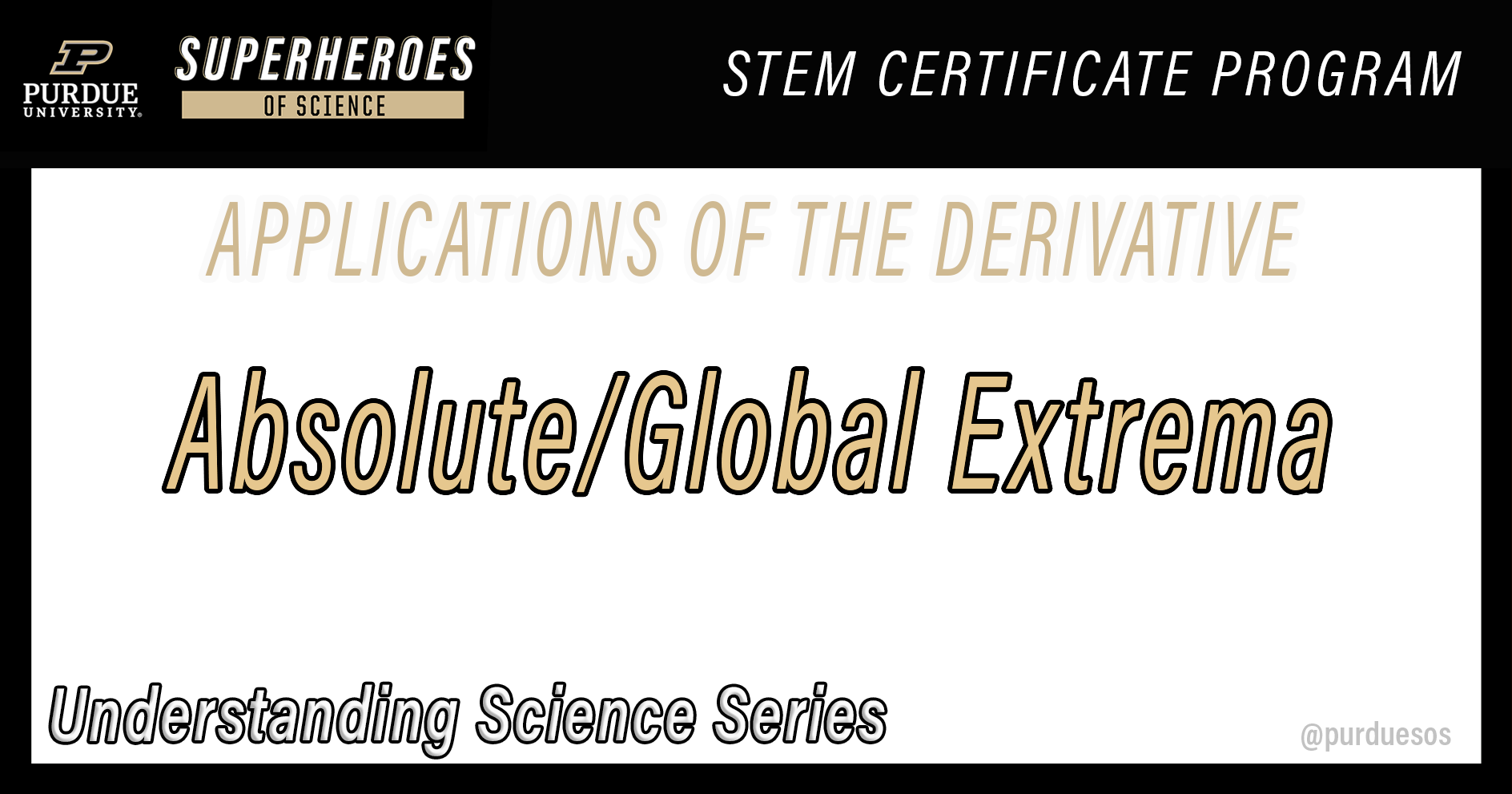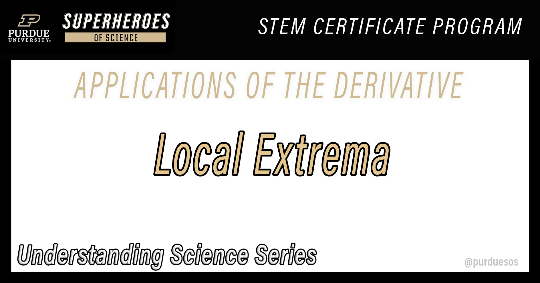 The Applications of the Derivative STEM Certificate was created in collaboration with Dr. Daniel Johnstone, Department of Mathematics, Purdue University, West Lafayette, IN
