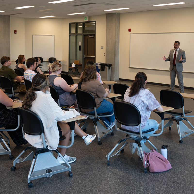 The format of the practicum allows students to connect with attorneys who specialize in different areas of law, ask questions in small group and one-on-one settings, and observe law professionals during the course of their work. Most practicum sessions last two hours, with the visit to the courthouse taking up a full day. During their visit to the courthouse, students observed trials and met with two judges.