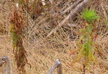 For the past three years marestail populations east of the Mississippi River have exhibited resistance to glyphosate, the active ingredient in many popular herbicides, including Roundup. In 2002 the first glyphosate-resistant marestail in Indiana was discovered in Jackson County. It has since spread to Bartholomew, Clark, Jefferson and Jennings counties. Now that glyphosate-tolerant marestail has entered the Hoosier state, row crop producers especially those who grow soybeans in a no-till system should be on the lookout for populations that are unfazed by the herbicide, said Jeff Barnes, Purdue University weed science research associate. Farmers who suspect their fields harbor glyphosate-resistant marestail can come closer to confirmation by examining the weed control history of their crop acres and noting which weeds are surviving herbicide applications, Barnes said. "You might look for fields that have a very high population of marestail growing above the soybean canopy and not very many other weeds," Barnes said. "That would be one indication you've controlled all of your weeds, but you're not controlling marestail. It also would rule out the potential that you just had a bad herbicide application or something happened when you were mixing the herbicide. "In that case you'd be either in a situation where the horseweed was too large, which could have been a problem, or it does have resistance." Marestail also is known as horseweed. A stronger sign that glyphosate resistance has occurred is the presence of healthy marestail in a field full of dead weeds. "Many times what you'll see in fields that have resistance is a live plant and a dead plant right beside each other," Barnes said. "You can have 10 dead plants and one live plant in the same area, or vice versa. They were probably all about the same size when they were sprayed, but for whatever reason, whether it is resistance or just plant stress, one plant died and one didn't. "If you've been in continuous soybeans and continuous glyphosate for your burndown and your in-crop weed control, then you do have more potential for resistance than if you've been in a rotation system and have been using other herbicides." Soybean growers rely heavily on glyphosate. This past spring, the U.S. Department of Agriculture estimated that 83 percent of the nation's soybean acres would be planted to Roundup-tolerant varieties. In Indiana, the percentage of soybean acres expected to be planted to Roundup Ready seed was even higher 91 percent. Marestail presents a greater threat to soybeans than corn for other reasons, as well. The weed can become established before soybean plants emerge. The weed grows taller than soybeans, thus competing for sunlight and other plant nutrients. Left undisturbed, marestail can reach a height of 7 feet. The weed also creates problems at harvest. Marestail plant tissue can get mixed in with soybeans in the combine, reducing the crop's market value. Marestail is not as significant a problem in corn because corn usually is planted earlier than soybeans and grows taller than the weed. "In 1995 marestail was considered one of the worst weeds in Indiana and, particularly, in no-till fields," Barnes said. "In no-till when you're trying to plant you want a nice, clean seedbed. Those weeds that have already emerged before you plant your crop are going to be very competitive and will have the potential to decrease your yields." Glyphosate-resistant marestail populations are expanding, in part, because the weed travels by wind, Barnes said. "Marestail can spread very quickly because it's a wind-blown seed," he said. "Some research has shown the seed can go up to a half mile away in a fairly low wind, so it has the potential to spread over a wide distance. It also has very rapid growth. As temperatures begin to warm and you start getting ready to plant your crop or already have a crop in the field, the rapid growth of the marestail, in relation to the crop, gives it a competitive advantage." Farmers can continue using glyphosate-based herbicides to control resistant marestail if they also use FirstRate and Classic brand products, Barnes said. FirstRate and Classic can be applied prior to or after soybean planting. With corn, 2,4-D and dicamba have proved to be effective in knocking out marestail, Barnes said. Marestail is among more than 240 weeds worldwide that have developed resistance to herbicides. Herbicide-resistant populations of jimsonweed, pigweed, lambsquarter and giant and common ragweed are present in Indiana. More information about glyphosate-resistant marestail and control options is available in the paper "Identifying Glyphosate-Resistant Marestail/Horseweed in the Field," by Barnes and Purdue weed scientists Bill Johnson and Glenn Nice. The paper can be downloaded online at https://www.btny.purdue.edu/weedscience/2003/Articles/horsetail7-23-03.pdf or by logging onto the Purdue Extension Weed Science Web page. Writer: Steve Leer, (765) 494-8415, sleer@purdue.edu Source: Jeff Barnes, (765) 494-4645, jbarnes@purdue.edu Ag Communications: (765) 494-2722; Beth Forbes, bforbes@aes.purdue.edu; https://www.agriculture.purdue.edu/AgComm/public/agnews/ Related Web site: