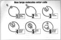 Getting Large Molecules Into Cells Purdue researchers have developed a way to deliver large molecules such as proteins and genes across cell membranes by first attaching them to common everyday vitamins. Disguised by the vitamins, the large molecules are transported through the cell membrane using one of the cell's natural pathways to bring vitamins into the cell. The above illustration shows the steps involved. The technique may someday be used to improve treatment for a number of diseases, including cancer and diabetes. |