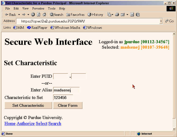 Note the private characteristic 123456 has been added and the Authorized By column shows the PUID