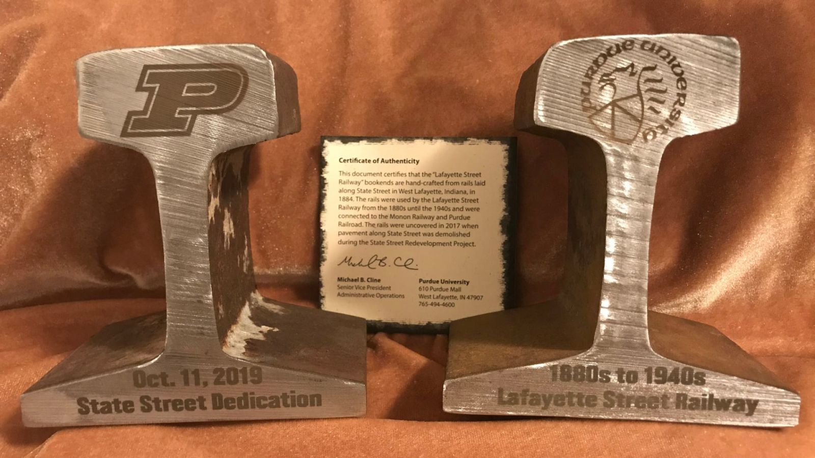 Bechtel student employees demonstrate laser engraving skills on steel rails