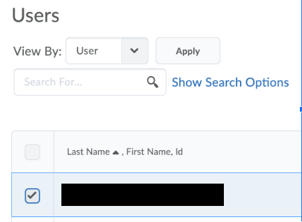 PLEASE NOTE: Options not changed on this page will match the settings for other learners for this quiz. - After setting the special access parameters to be granted on this quiz, scroll down to Users. Check the box to the left of the name of the learner(s) who are being granted special access.