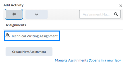 - From the course navigation bar, click Content and navigate to the module location where the assignment should reside.