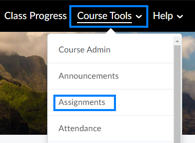 - From the course navigation bar, click Course Tools and select Assignments from the drop-down.