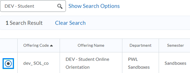 - Select the radio button to the left of the appropriate course and click Add Selected.