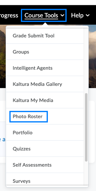 - From the course navigation bar, click Course Tools and select Photo Roster from the drop-down.