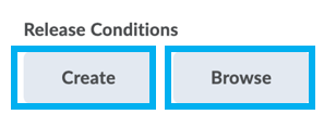 - Click Create if you are creating a new release condition. Click Browse if you are applying a release condition that you have already created and/or are using elsewhere in the course.