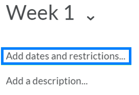 - Beneath the name of the module, click Add dates and restrictions. If a date is already populated, click the date.