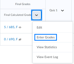 - Click the drop-down icon to the right of the column you previously chose to release and select Enter Grades from the drop-down.