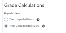 - If you would like students to see a running total of the points they have earned to date, select Drop ungraded items. If you would like students to see their score out of the total points possible for the semester, select Treat ungraded items as 0.