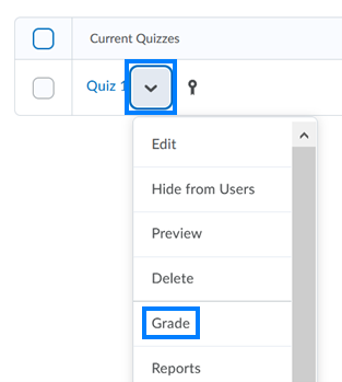 - Click the drop-down icon to the right of the quiz name and select Grade from the drop-down.