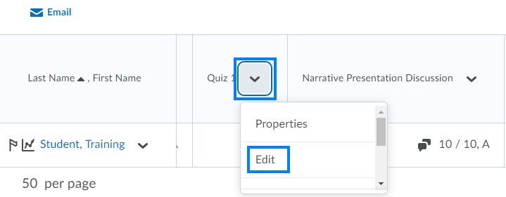 - Click the drop-down to the right of the column title and select Edit.