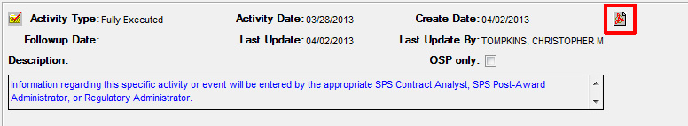 The Negotiation Activities record individual steps during the processing of a contract or Prior Approval in a chronological order. Each activity depicts a specific interaction with a sponsor, communication, internal routing to a new location or a evolution in the life cycle of a record.