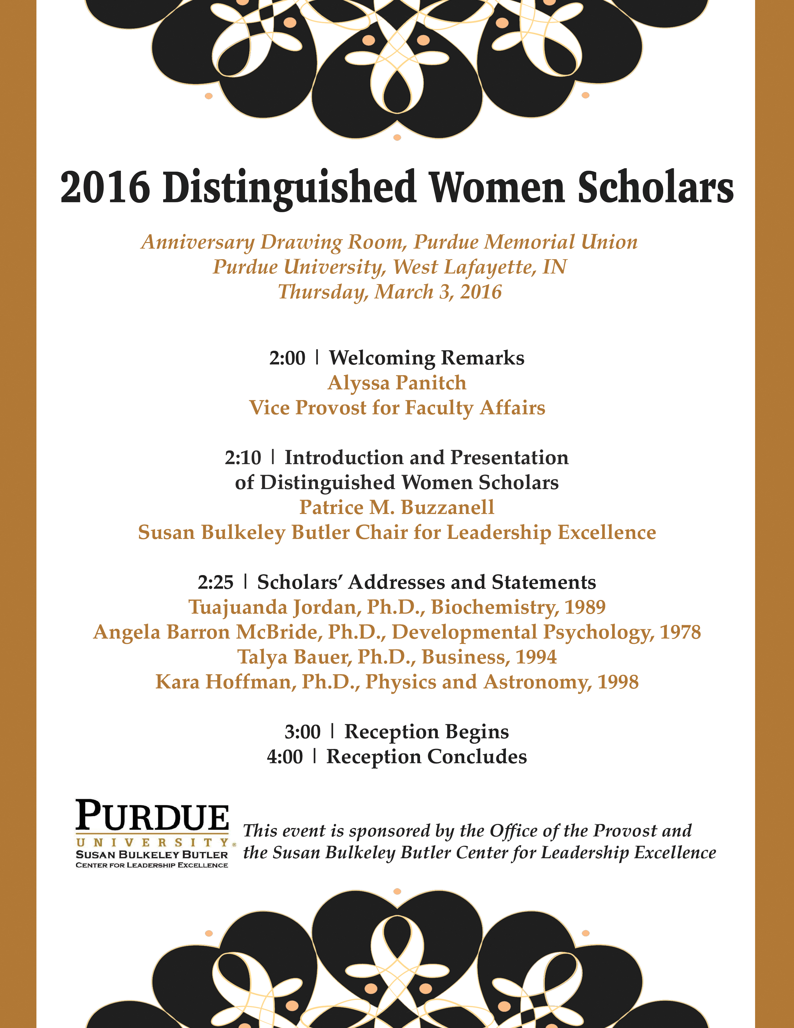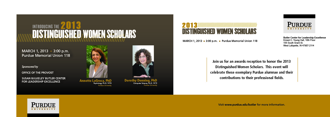 *The Distinguished Purdue Alumni Scholars Award was renamed in 2022 to reflect its openness to all distinguished Purdue doctoral alumni who have contributed to the advancement of women in academia. It was previously named the Distinguished Women Scholars Award.
