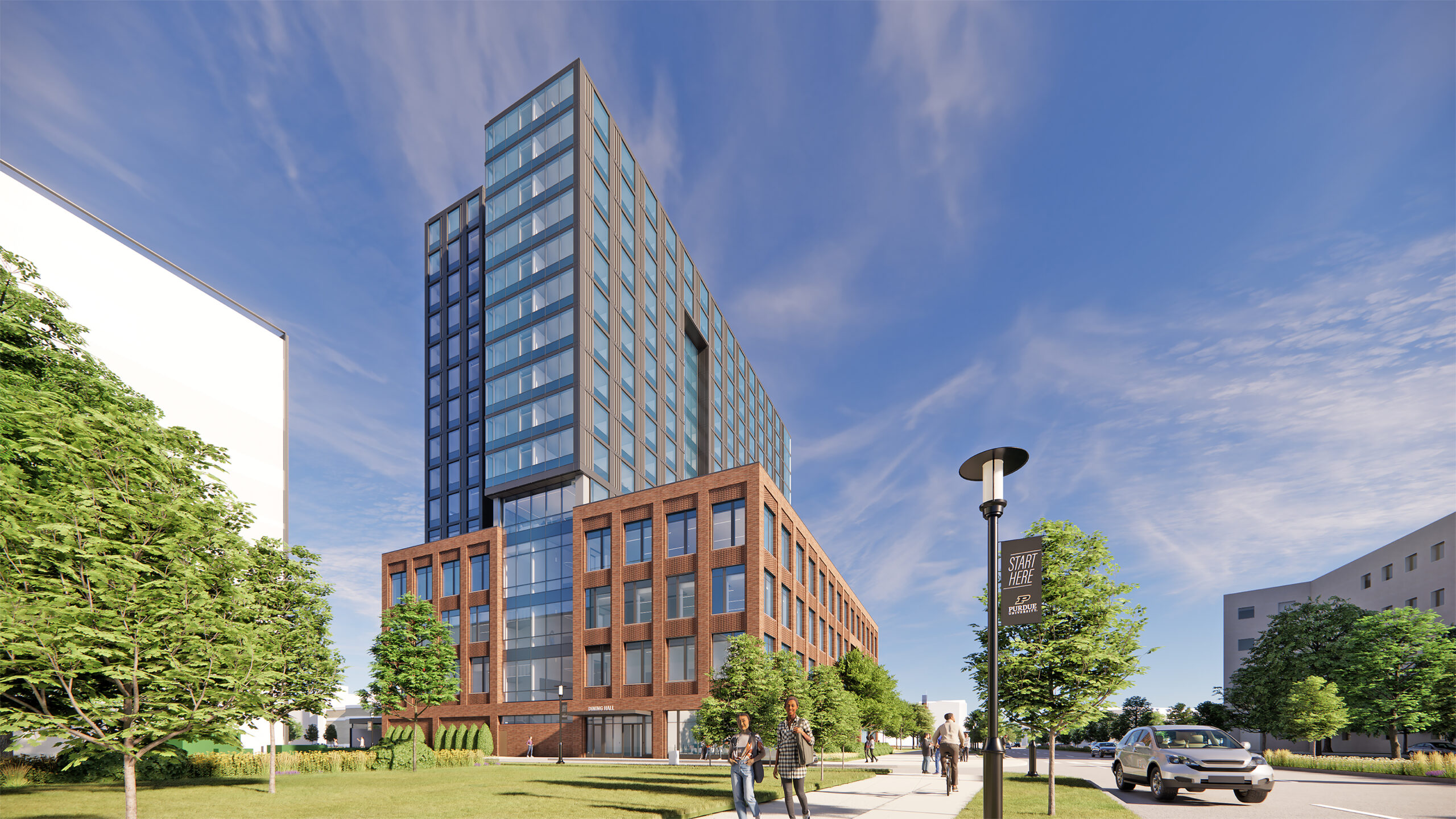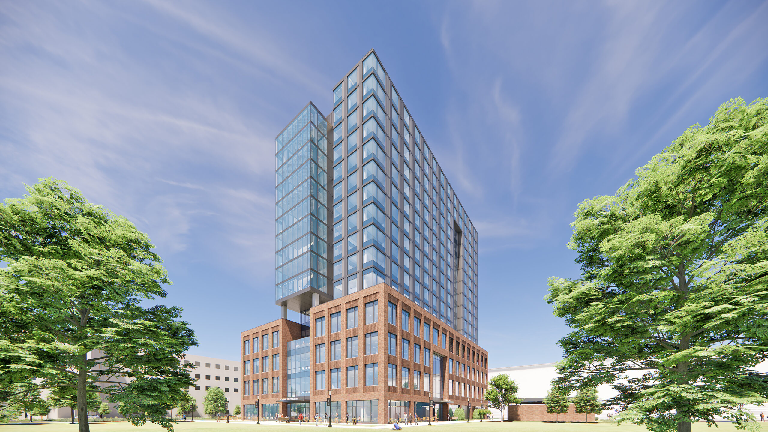 The Academic Success Building will be the hub of the fully integrated expansion of Purdue’s flagship campus. Vital in scaling the affordable, accessible, and connected Indianapolis campus, the building will help Purdue secure Indiana’s economic and creative future. The facility will be the center of a vibrant campus community, emphasizing a residential experience for students and a gathering place for the community.