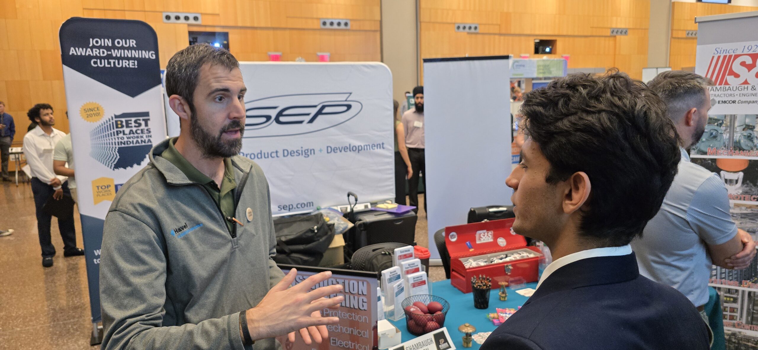 More than 640 Purdue students networked with over 60 employers at the Engineering, Science and Tech Connect Career Fair Sept. 30 at the Campus Center in Indianapolis. The popular fair, which attracted almost 100 more students than last year, kicked off with a breakfast for the participating employers and a welcome from David Umulis, senior vice provost Purdue University for Indianapolis, and Patrick Francis, director of career relations for Indianapolis.