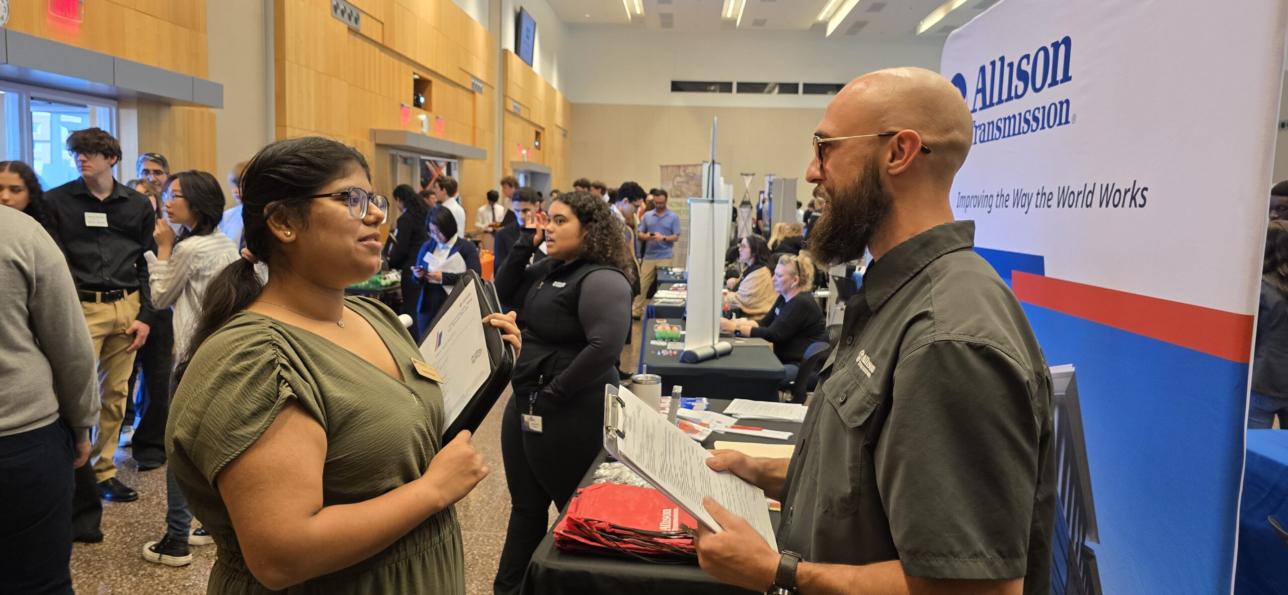 Kasandra Rea-Padilla, a senior studying mechanical engineering and headed to graduate school, enjoyed speaking with representatives from about 15 companies, including Cummins, Duke Energy, Shambaugh & Son, and Gaylor Electric.