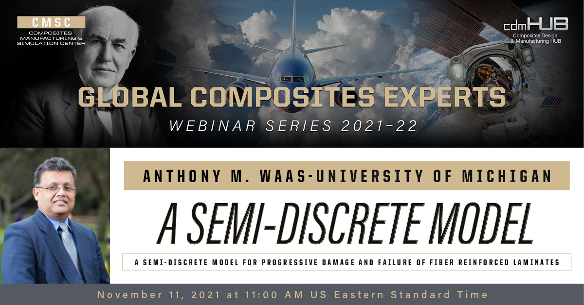 Purdue Composites Design & Manufacturing HUB (cdmHUB) invites you to a series of webinars presented by global composites experts. These webinars will examine the history, present capabilities, and future of composites science and technology, with the goal of sharing the vast knowledge of composites that has been developed over the past 50 years.