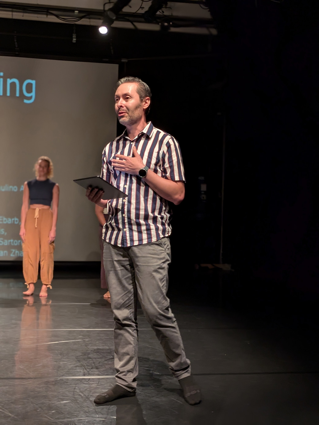 Working with Professor Renee Murray (Theatre & Dance), Professor Sierra facilitated a two-week workshop with 7 Theatre & Dance students that explored the intersection of movement and storytelling. The capstone of this workshop was a public performance entitled, "Dramaturgy: Living in Motion," which was held on September 21st for an audience in Pao Hall.