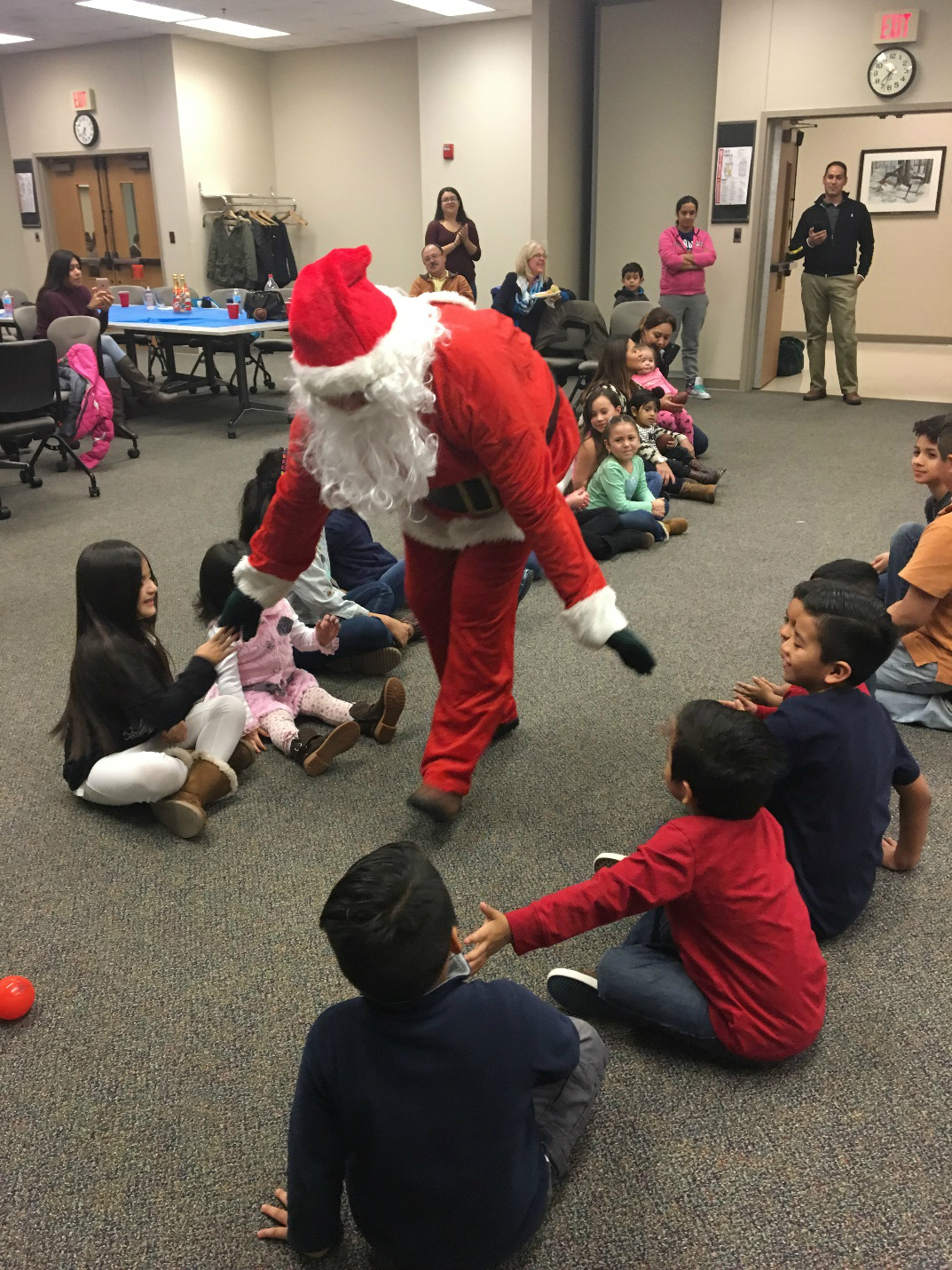 Kids enjoyed music, food, gifts, and a visit from Santa Claus at the LCWE Christmas party.