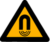 Do not enter a room with magnetic resonance equipment if you wear a pacemaker without previously consulting a physician. No magnetic of ferrous objects or watches within the 10gauss field. No compressed gas cylinders within the 5 gauss field.