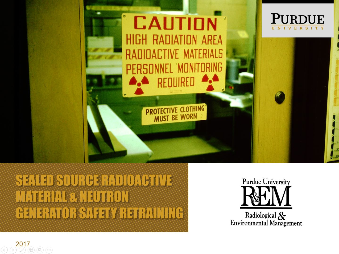 This training applies only to those who exclusively use sealed sources. Users must go through the complete radiation safety training course. This training focuses on important sealed source information such as sealed source and laboratory security, periodic leak testing, and inventory. You will need to submit an A-4 form to the EHS office. Accessing the Training through HSI: Before using the Learning Management System software for the first time you must register by setting up a new user account profile. To register, click the "REGISTER" button on the login page and provide a user ID and password or your choice (you may use your career account credentials if you wish) as well as other required information. From the member dashboard, click on “View Catalogue” in the bottom right-hand corner. From the catalogue search for “Purdue Sealed Sources Radiation Training.” |