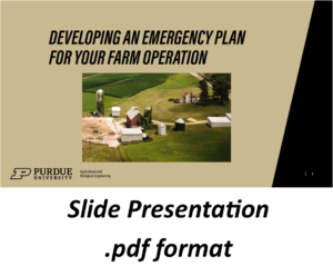 Extension educators (and ag teachers) are welcome and encouraged to use the slide set below as an educational tool for classes, workshops, producer meetings, or PARP programs. The importance of emergency preparedness makes the topic appropriate for many settings. Please contact INPREPared if you have questions or suggestions.