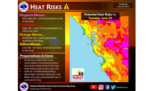 - The National Weather Service (NWS) prototype HeatRisk forecast provides a color and numeric value that places forecast heat for a specific location into an appropriate level of heat concern, along with identifying groups potentially most at risk at that level. The HeatRisk is accompanied by recommendations for heat protection and is a useful tool for planning for upcoming heat and its associated potential risk.