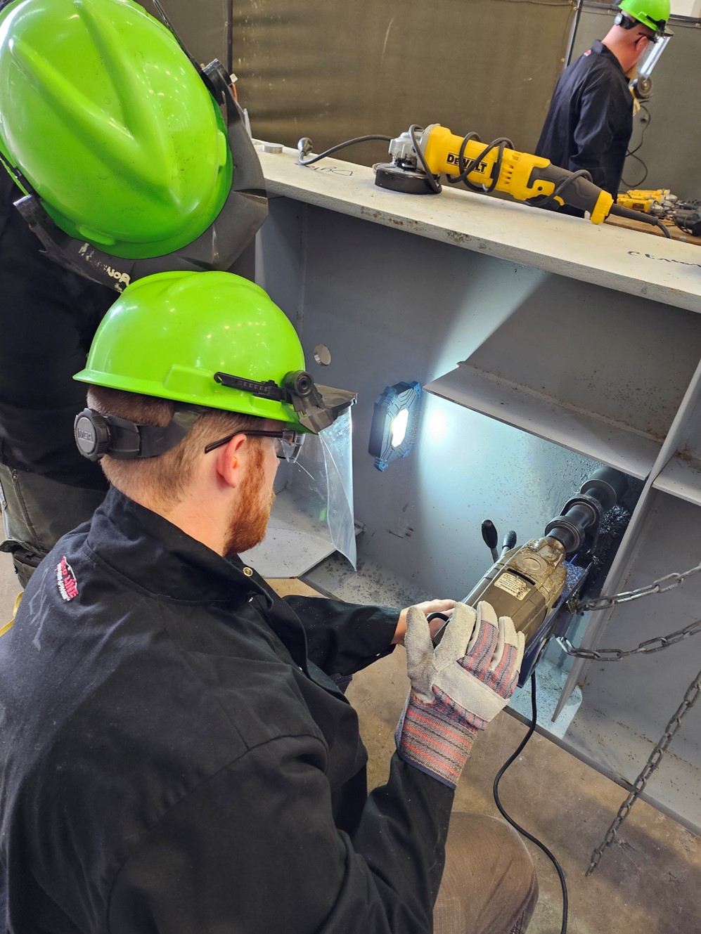 Throughout the two-day course, participants engage in a series of exercises designed to mimic real-world conditions, from drilling and cleaning crack arrest holes and performing bolt tightening procedures. Emphasis is placed on ensuring proper technique and understanding the importance of stress flow in bridge components. These training activities are supported by expert instruction and real-world examples, helping participants develop the skills to identify, plan, and implement effective retrofits for aging steel infrastructure. By the end of the course, participants are equipped with the knowledge and experience to perform retrofits that ensure structural integrity and longevity for steel bridges.