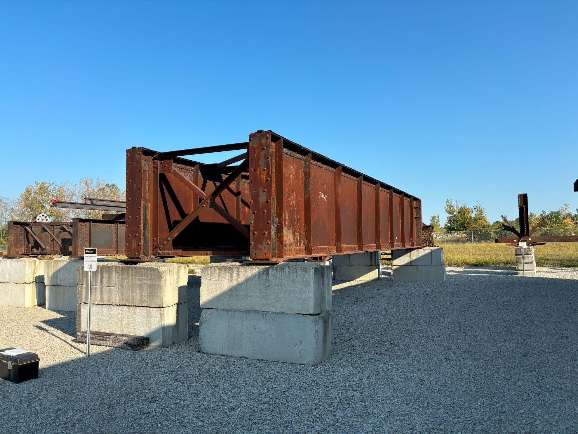 The bridge is a riveted deck plate girder (RDPG) span original on the Norfolk and Wester Railway (N&WRR) subsequently acquired by Norfolk Southern Railroad. As was often the case, the bridge was moved from its original location circa 1969 and used on the Wabash railroad until it was removed from service at an unknown date. The bridge was in storage at the Lafayette yard of NS and rather than be scrapped, the bridge was donated to S-BRITE for research, training and educational use. The bridge has various interesting features, including bearing modifications, impact damage, and corrosion damage.