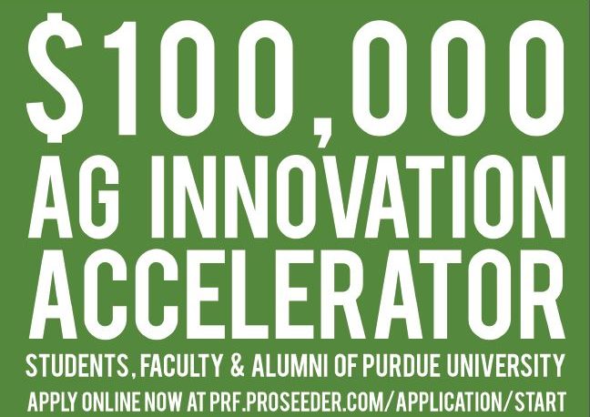 Purdue Ventures is hosting the fall 2017 $100,000 Ag Innovation Ag-Celerator Callout for Purdue students, faculty, alumni and other Purdue affiliates. Ideas, startups and businesses based on Purdue plant sciences innovation are eligible to apply and compete for funding.