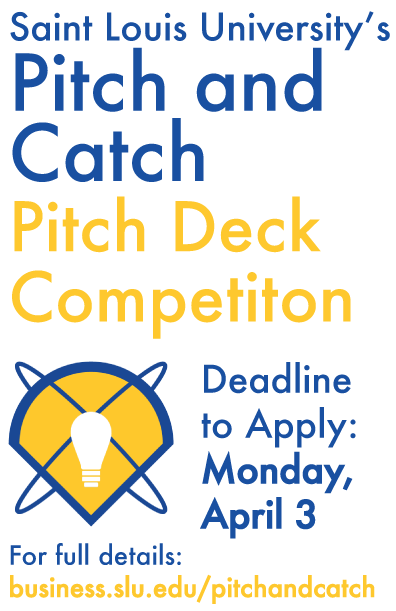 Pitch and Catch is open to current students from any college or university. No matter your major, school, or business or idea’s concept, SLU wants to see your pitch deck!
