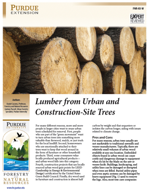 For many different reasons, more and more people in larger cities want to reuse urban trees scheduled for removal. People who are part of the “green movement” want to turn urban trees into something more valuable than firewood, mulch or just trash for the local landfill. This publication describes the pros and cons of using urban trees for lumber, the types of lumber that are economical to produce from urban trees and how you might find a sawyer who can turn your tree into usable lumber.