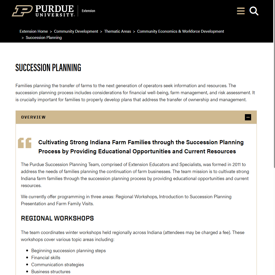 Families planning the transfer of farms to the next generation of operators seek information and resources. Purdue Extension’s Succession Planning Resource is designed to help Indiana farm families navigate this critical transition. The succession planning process includes considerations for financial well-being, farm management, and risk assessment. It is crucially important for families to properly develop plans that address the transfer of ownership and management.