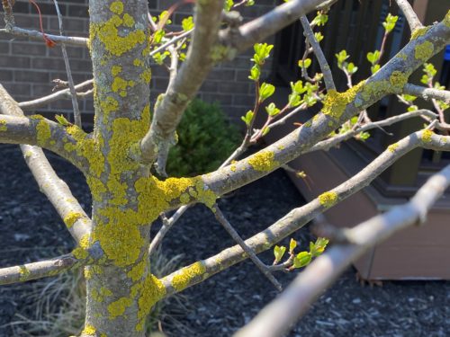 Lichen is common on trees and not bad either. Those grayish-green patches, come in all sizes and shapes and sometimes covering much of the tree, are not feeding on your woody plants. Lichens grow on the surface of the tree, and do not penetrate any tissue. Instead, they make use of the trunk or branches for support. They can be aesthetically pleasing for many. Lichens play a very significant role as a bio-indicator. They only grow where the air quality is good and have a favorable growing environment. They help filter the air as well… so, don’t worry, be happy!