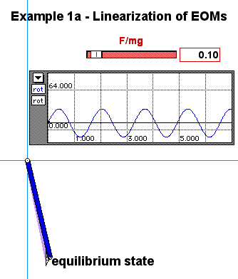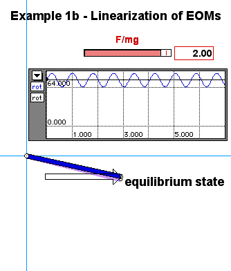 Shown below are animations of the free response of the bar for two values of F/mg. From these animations, can you see the influence of the force F on the equilibrium state and the frequency of oscillations about this equilibrium??