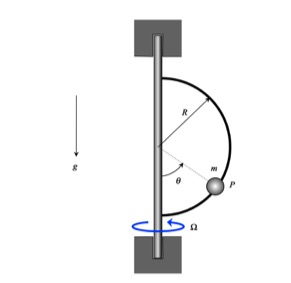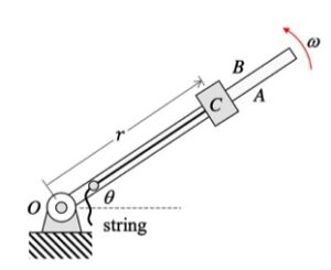 Step 1 – FBD: Draw a free body diagram of P. With the guide being smooth, there will be only two forces acting on P: the weight and the normal force N from the rotating guide.